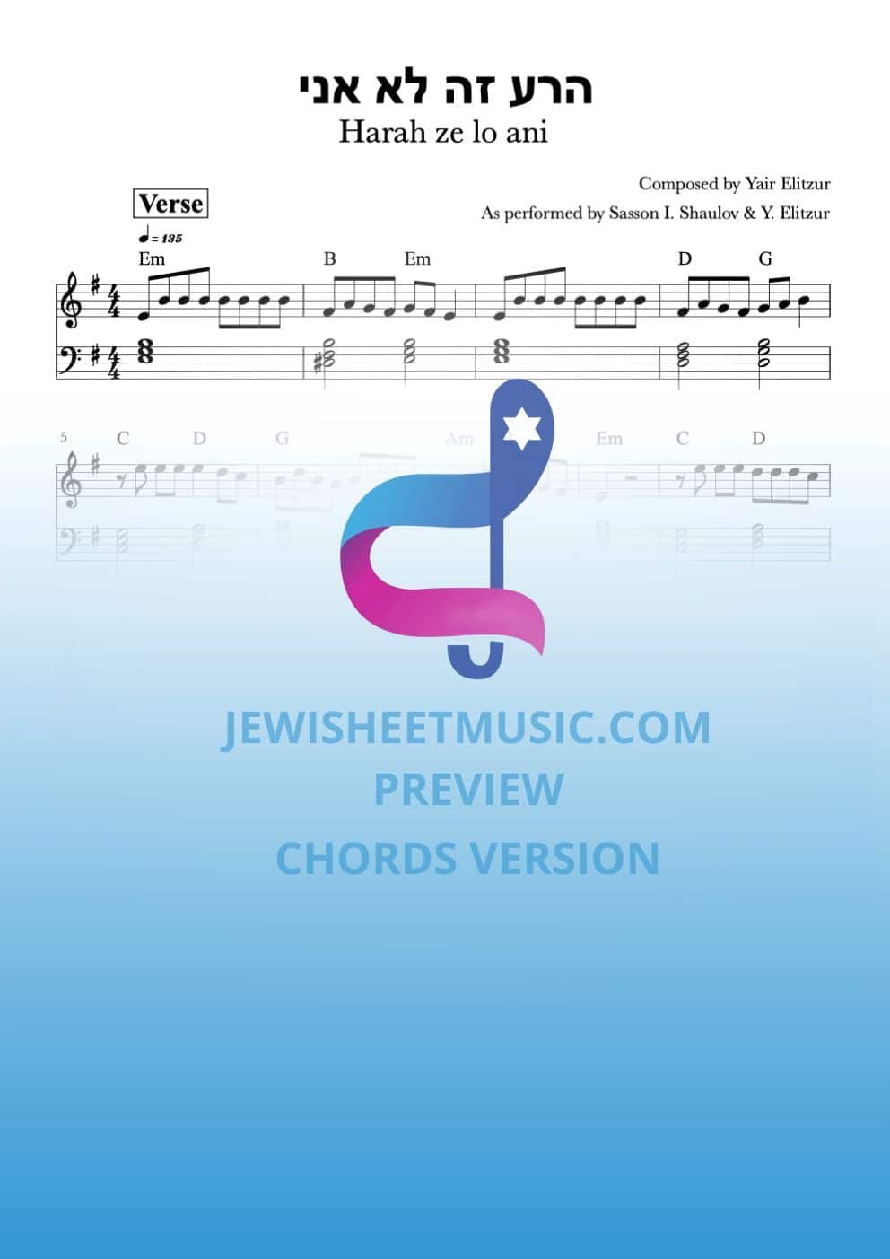 Home > Lead Sheet > Harah ze lo ani – Sasson Ifram Shaulov & Yair Elitzur. הרע זה לא אני